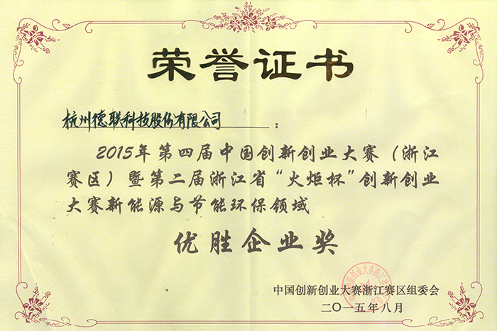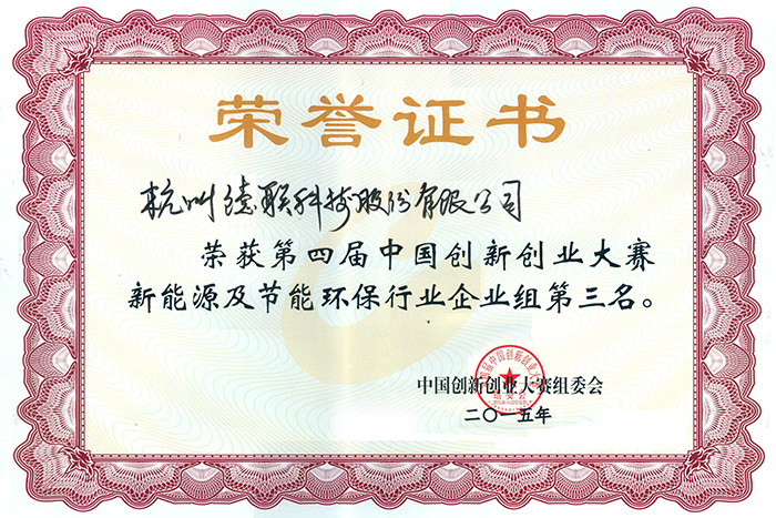 4.荣获2015年第四届中国创新创业大赛新能源及节能环保行业企业组第三名